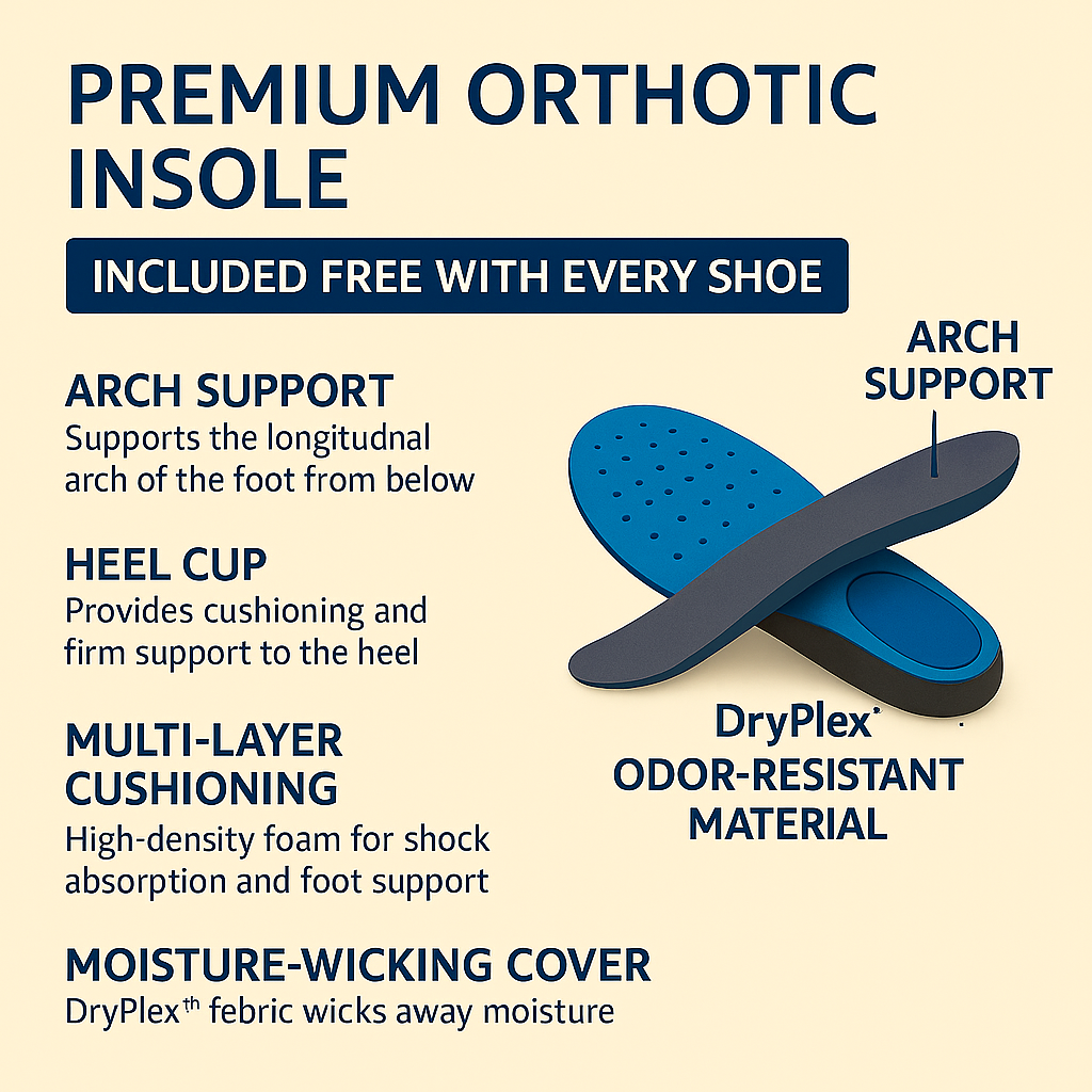 Includes orthopedic insoles